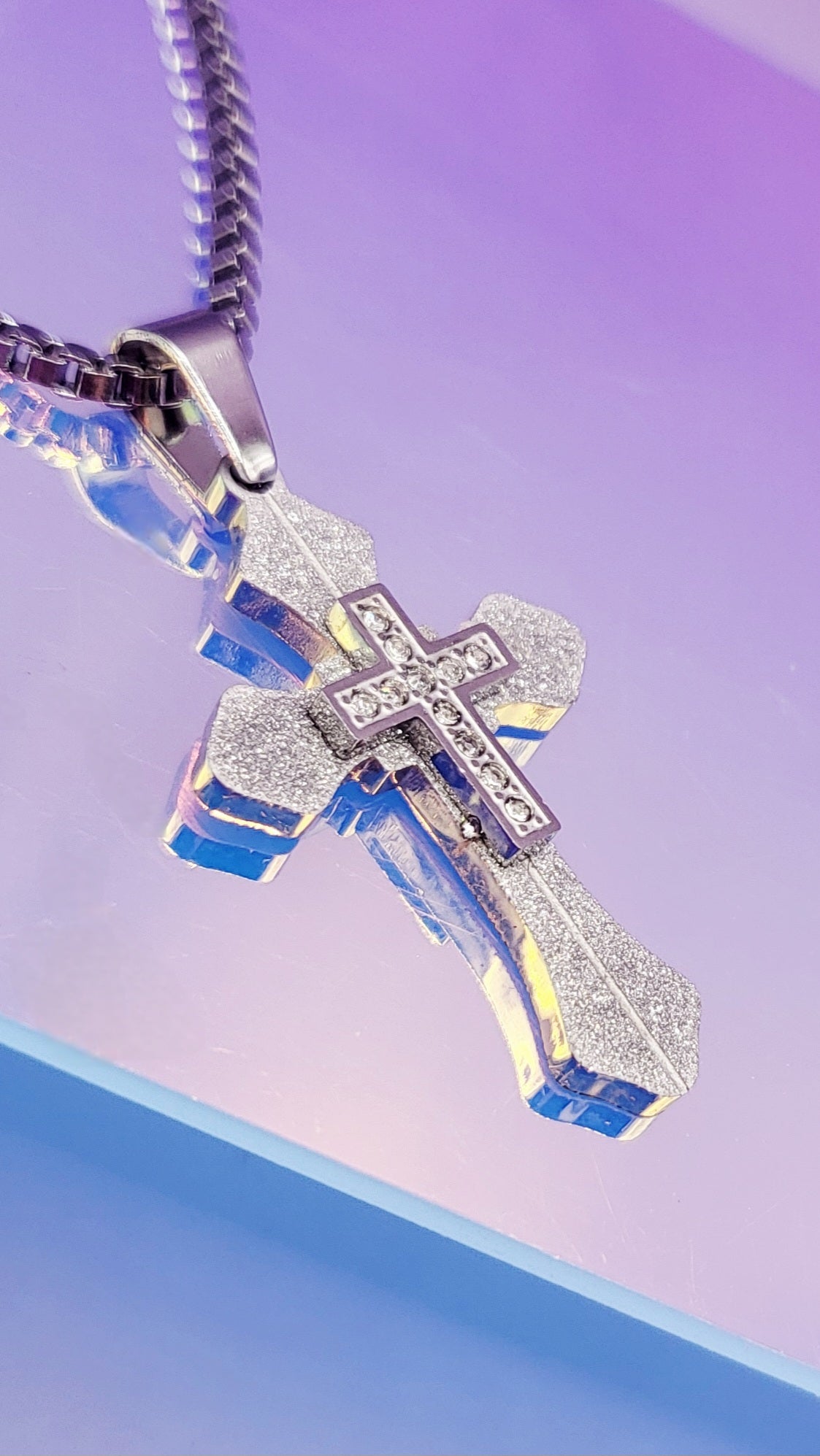 Glitter Silver Cross Necklace