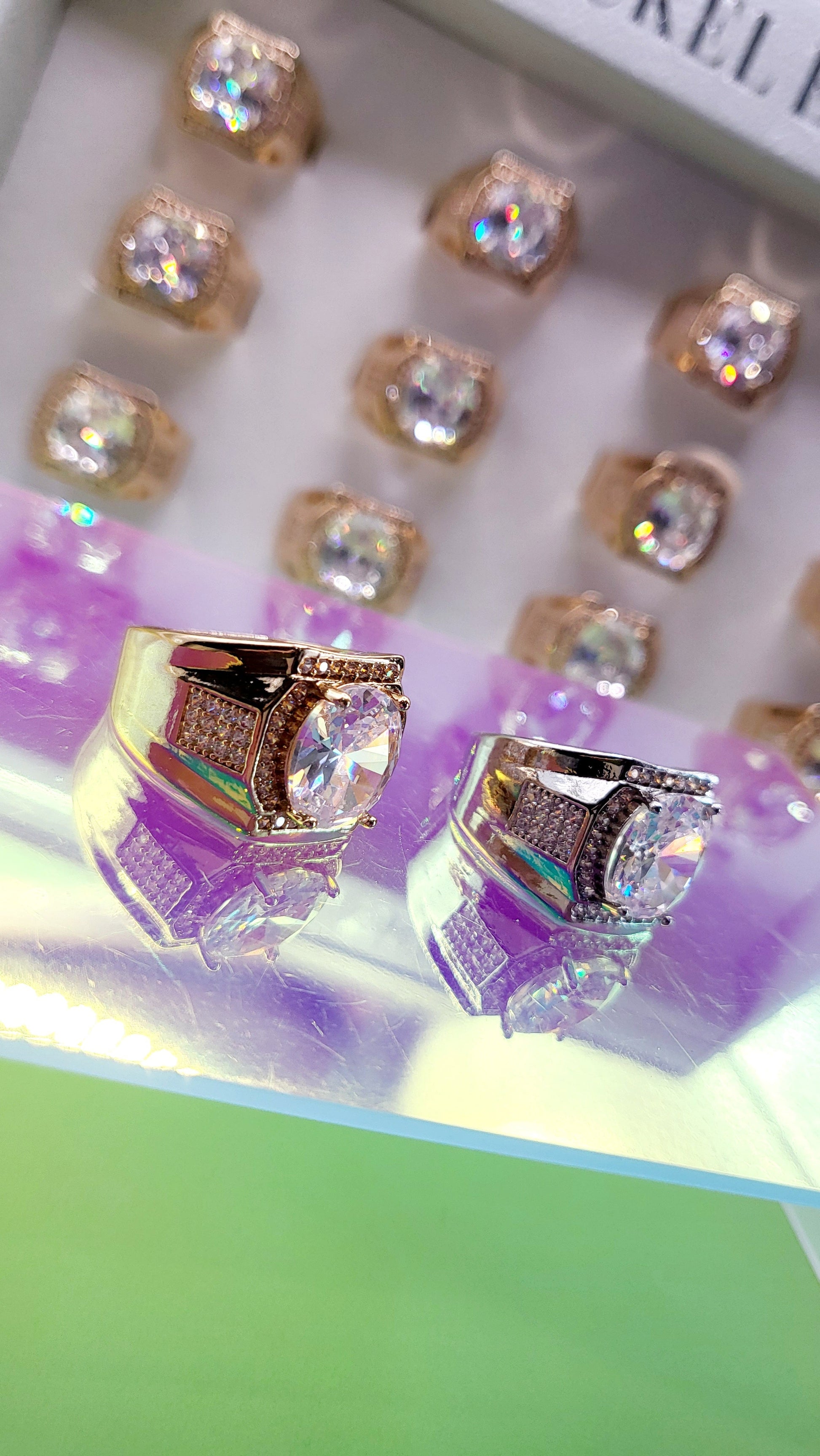 Men's Iced Out Crystal Box Set of 12 Rings