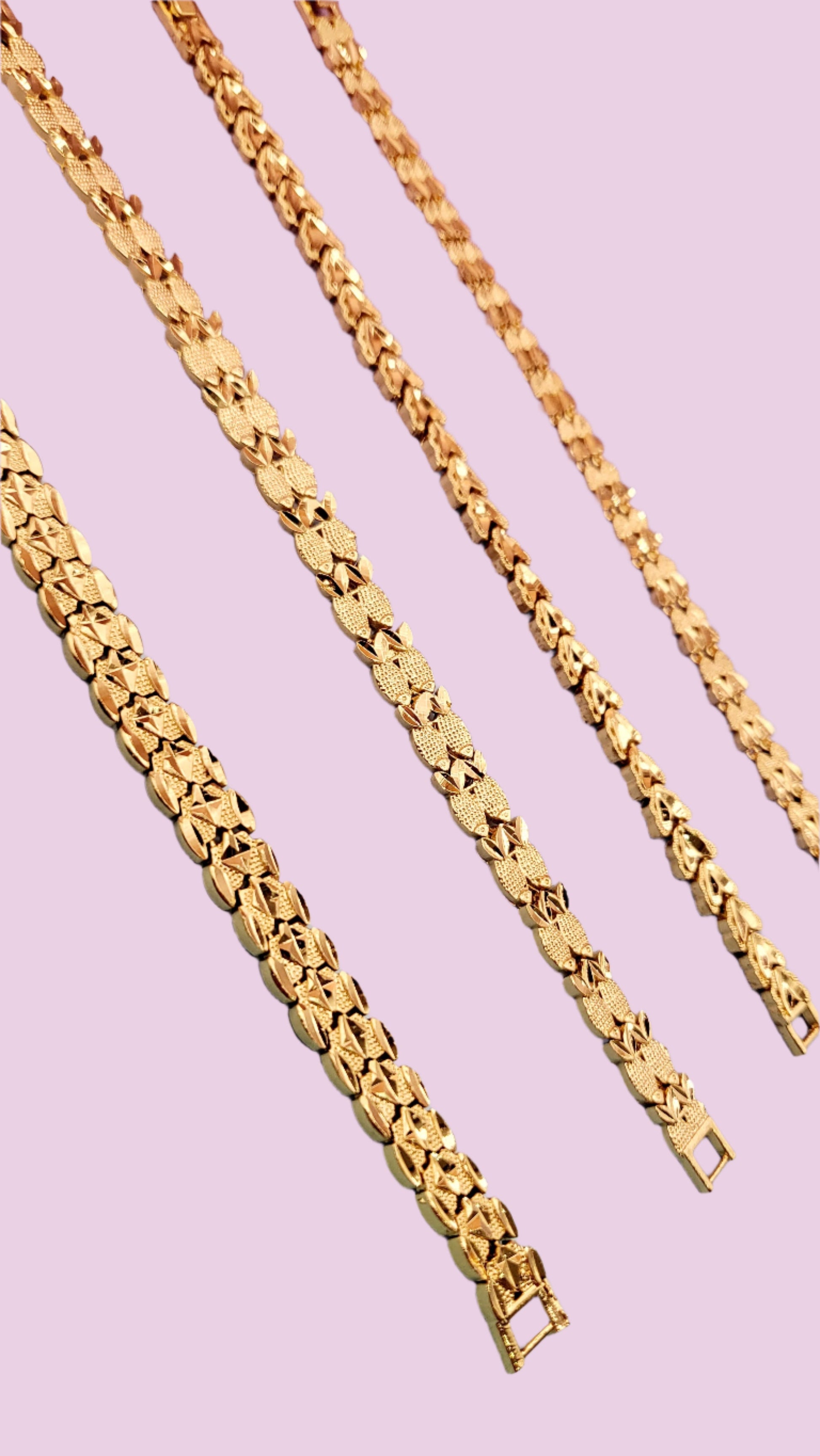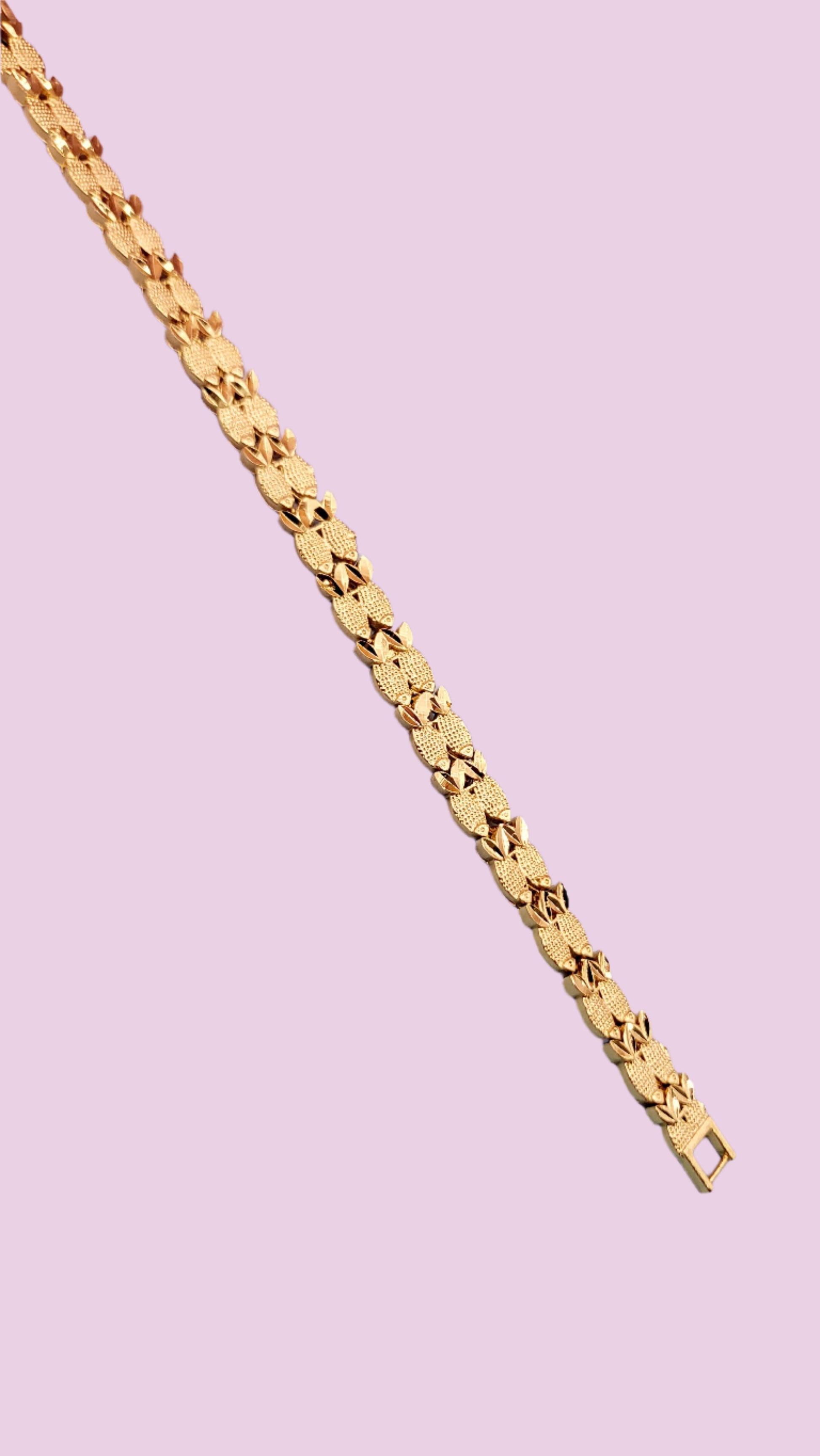 Add a playful twist to your style with this gold colour bracelet, featuring unique patterns and a shiny finish. Perfect for everyday wear or dressing up, it’s designed to stand out whether you wear it solo or layer it with your favourites. Hypoallergenic and nickel-free for all-day comfort and sparkle—your new go-to accessory for effortless, feel-good style.